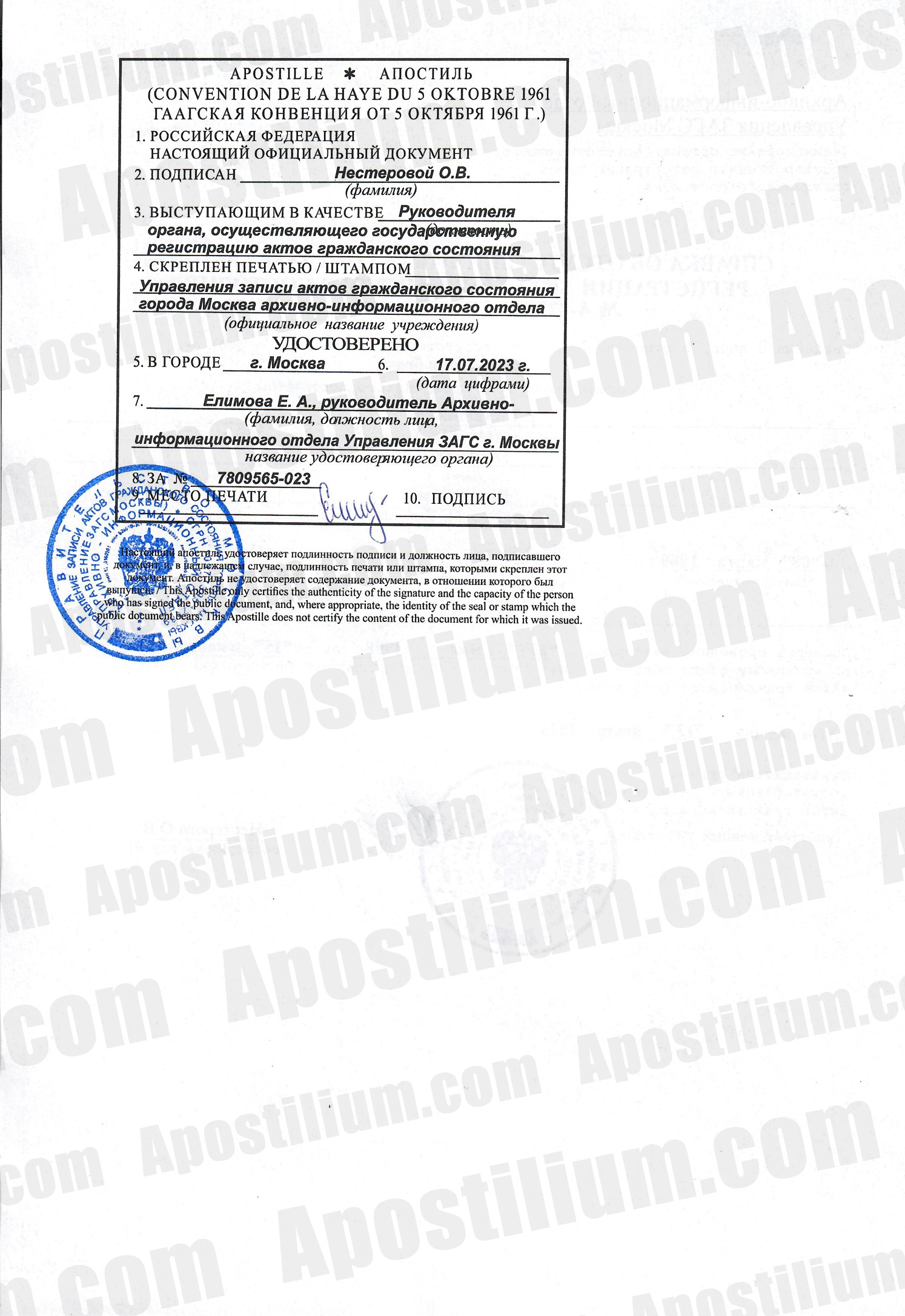 Апостиль на свидетельство из ЗАГС с доставкой до двери