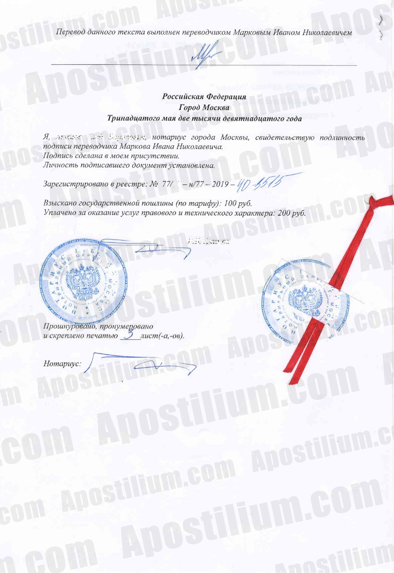 Нотариус удостоверяет личность лингвиста и наличие у него нужной квалификации.